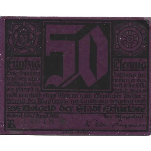 | صادرکننده | Erfurt (notgeld), City of |