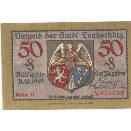 | Imprimeur | Carl Flemming & T. C. Wiskott A.G., Glogau, Poland |