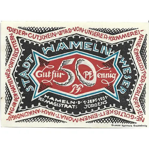 | Issuer | Hamelin (notgeld), City of |