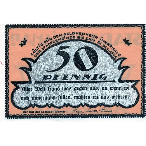 | Issuer | Wismar (notgeld), City of |