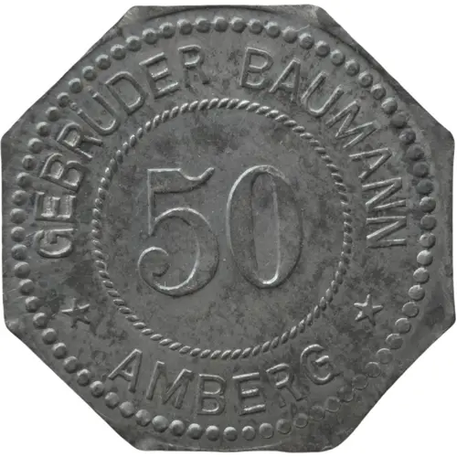 | Obverse lettering | GEBRÜDER BAUMANN 50 ✶ AMBERG ✶ |