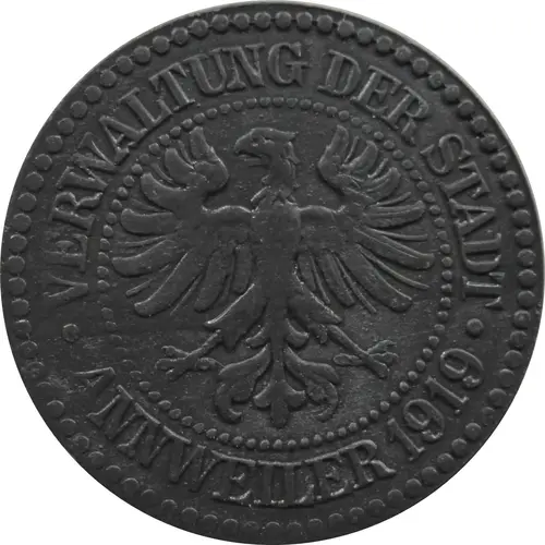 | Opis líce | VERWALTUNG DER STADT ● ANNWEILER 1919 ● |