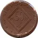 Technical/Grading: This 50 Pfennig piece is crafted from brown porcelain, a characteristic material for Notgeld due to severe metal shortages. Key areas for assessing condition include the clarity of the molded details, particularly the lettering and numerical denomination, which can show weakness from mold wear or firing inconsistencies. The edges and fields should be examined for chips, cracks, or surface abrasions, which are common vulnerabilities for ceramic coinage. A well-preserved example will exhibit uniform coloration and sharp, well-defined elements indicative of a good mold and firing.
