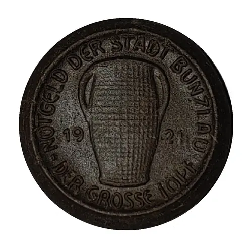 NOTGELD DER STADT BUNZLAU 19 21 DER GROSSE TOPF (Translation: Money of the Town of Bunzlau 1921 The big pot) |