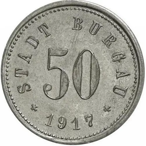 | Obverse lettering | STADT BURGAU 50 ✚ 1917 ✚ |