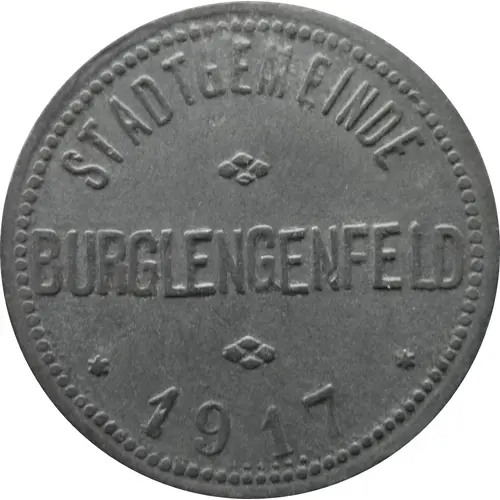 | Leyenda del anverso | STADTGEMEINDE BURGLENGENFELD ✶ 1917 ✶ |
