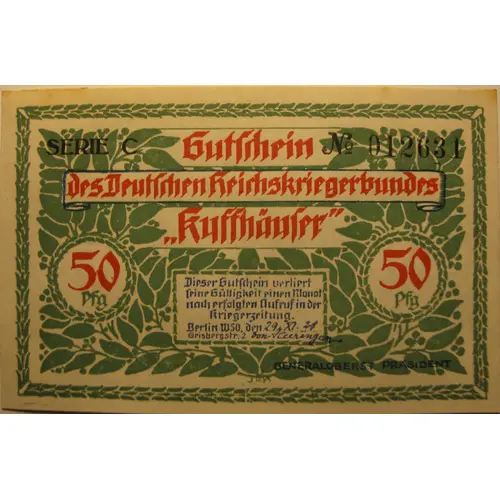 | Obverse lettering | Reichskriegerbund Kyffhauser,Berlin ,generaloberst prasidant. C |