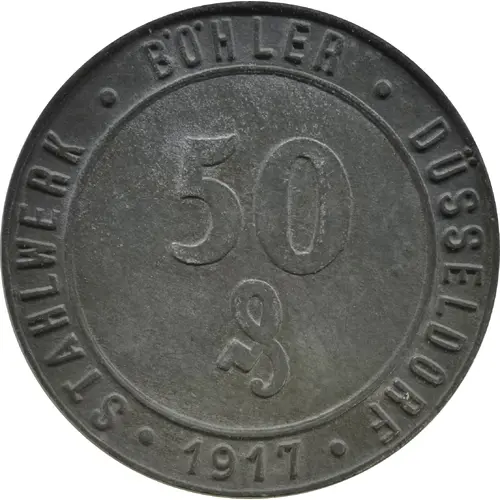 | Obverse lettering | STAHLWERK • BÖHLER • DÜSSELDORF 50 (Old symbol for Pfennig) • 1917 • |