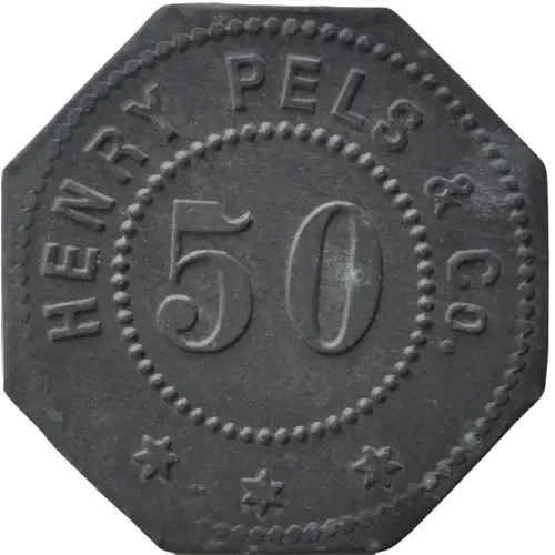 | Obverse lettering | HENRY PELS & Co. 50 ✶ ✶ ✶ |