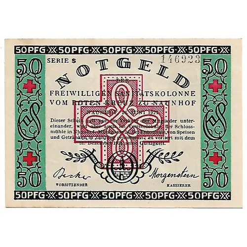 Notgeld der Freiwilligen Sanitatskolonne Vom Roten Kreuz Zu Naunhof (Translation: Emergency money of the Volunteer Medical Team of the Red Cross of Naunhof) |