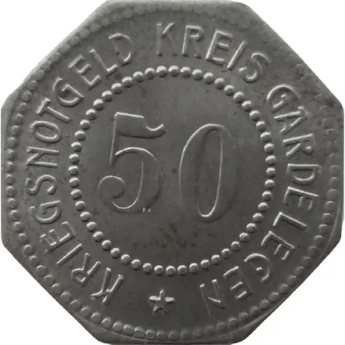 | Obverse lettering | KRIEGSNOTGELD KREIS GARDELEGEN 50 ★ |