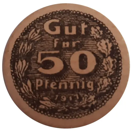 | Obverse lettering | Gut fur 50 pfennig 1917 |