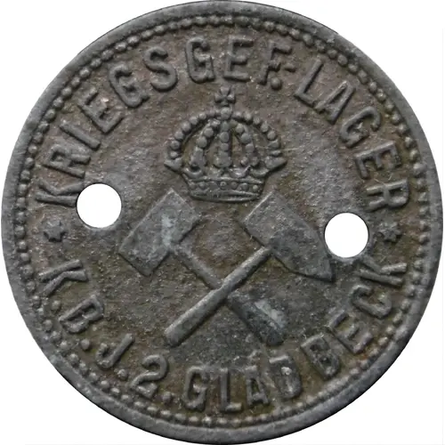 | Obverse lettering | KRIEGSGEF.-LAGER K.B.J. 2. GLADBECK |