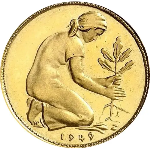 | Descrizione del dritto | A woman (Trümmerfrau) planting an oak, symbol of Germany`s rebirth after the war |