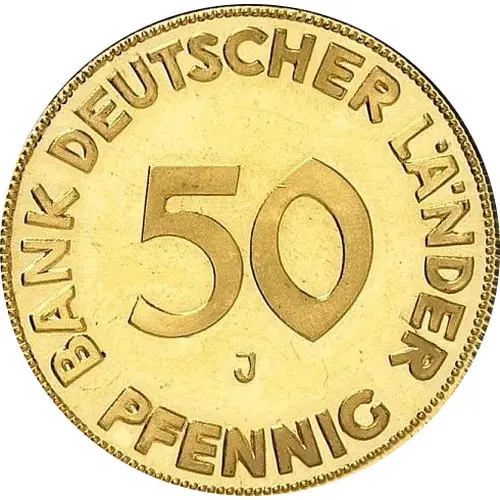 | Reverse lettering | BANK DEUTSCHER LÄNDER 50 J PFENNIG (Translation: Bank of the German States) |