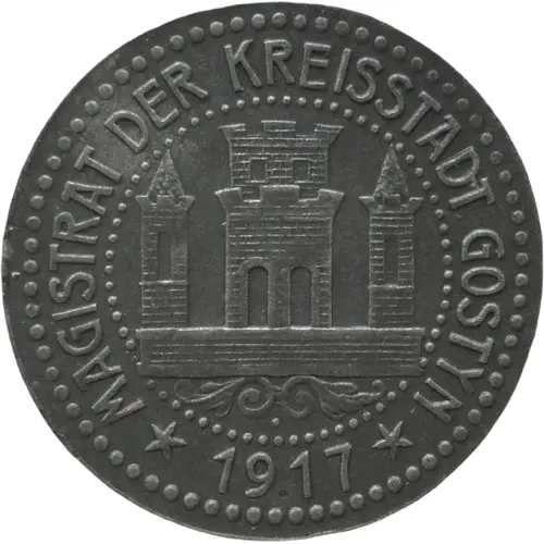 | Legenda do anverso | MAGISTRAT DER KREISSTADT GOSTYN ★ 1917 ★ |