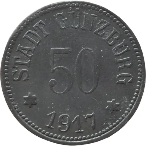 | Obverse lettering | STADT GÜNZBURG 50 ★ 1917 ★ |