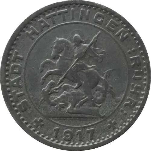 Leyenda del anverso STADT HATTINGEN  :RUHR: ✚ 1917 ✚