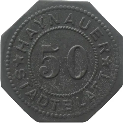 | Obverse lettering | HAYNAUER 50 ★ STADTBLATT ★ |