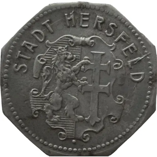 | Obverse description | Pearl rim, city name half circled above Coat of Arms. |
