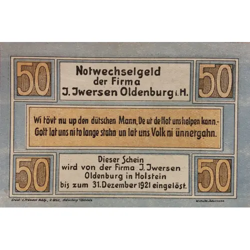 | Printer | C. Fränckel Nchfg. C. Will, Oldenburg H., Germany |