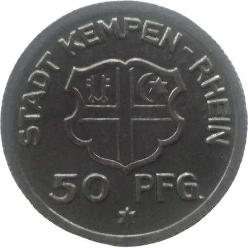 | Obverse lettering | STADT KEMPEN - RHEIN 50 PFG. ✶ |