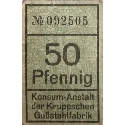 | Opschrift voorzijde | N° 50 Pfennig Konsum-Anstalt der Kruppschen Gußstahlfabrik |