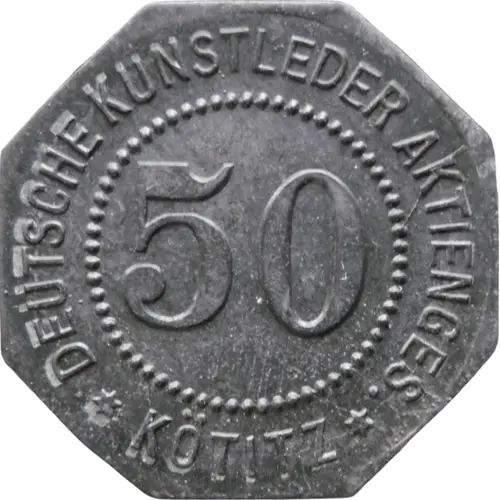 | Legenda del dritto | DEUTSCHE KUNSTLEDER AKTIENGES. 50 ★ KÖTITZ ★ |