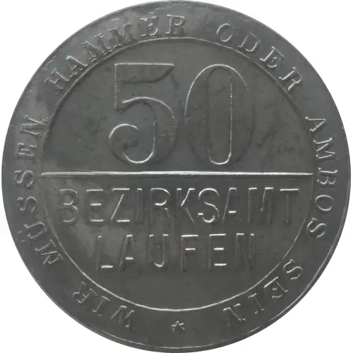 | نوشتههای روی سکه | WIR MÜSSEN HAMMER ODER AMBOS SEIN ✶ 50 BEZIRKSAMT LAUFEN |