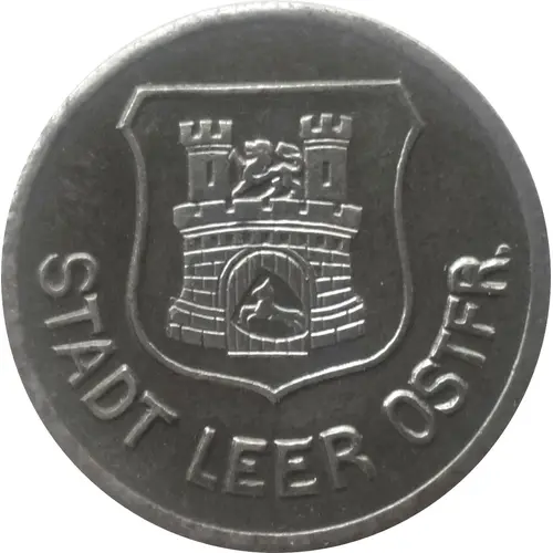 Artistry: The aesthetic of this 50 Pfennig piece is characteristic of wartime German Notgeld: functional and utilitarian. While specific engravers for Leer's iron issues are generally unrecorded, the design typically prioritizes clear legibility of the denomination, issuer, and date. Stylistically, it belongs to the "zweckmäßig" (purposeful) school, common for emergency coinage, often featuring simple typography and sometimes a stylized city emblem, executed without elaborate ornamentation to facilitate rapid production under dire circumstances.