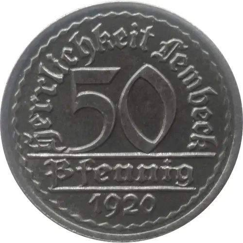 | Надписи аверса | Herrlichkeit Lembeck 50 Pfennig 1920 |