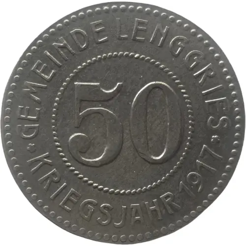 Obverse lettering GEMEINDE LENGGRIES 50 ★ KRIEGSJAHR 1917 ★