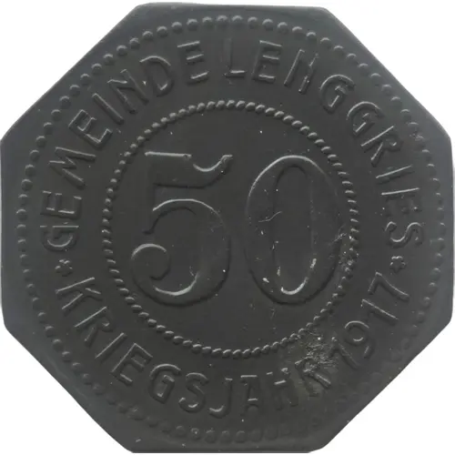 | 表面の銘文 | GEMEINDE LENGGRIES 50 ★ KRIEGSJAHR 1917 ★ |