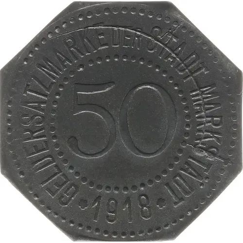 | نوشتههای روی سکه | GELDERSATZMARKE DER STADT MARKSTÄDT 50 ✿ 1918 ✿ |