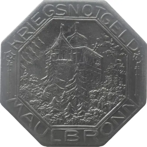 | 正面铭文 | KRIEGSNOTGELD MAULBRONN |