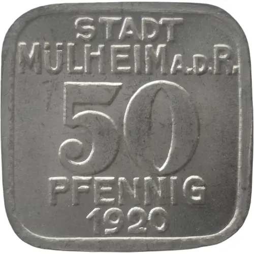 | Obverse lettering | STADT MÜLHEIM A.D.R, 50 PFENNIG 1920 |