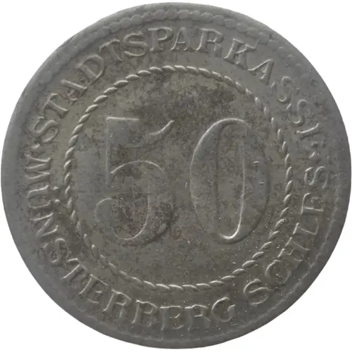 | Ön yüz lejandı | STADTSPARKASSE 50 ✦ MÜNSTERBERG SCHLES. ✦ |