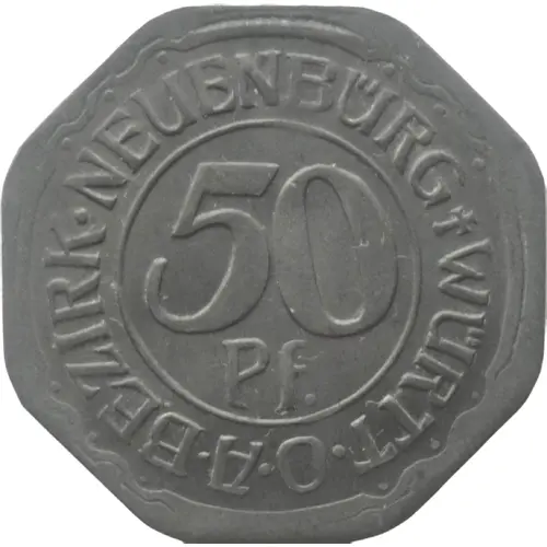 | Obverse lettering | O•A•BEZIRK•NEUENBÜRG ♰ WÜRTT• 50 Pf. |