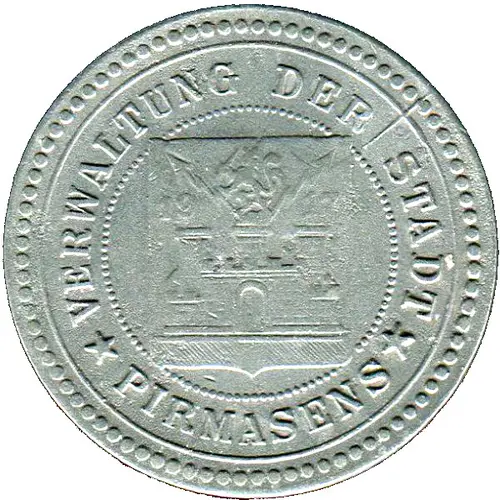 | Obverse lettering | VERWALTUNG DER STADT 19 17 ★ PIRMASENS ★ |