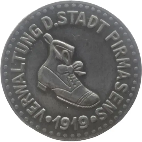| Obverse description | Pearl rim, legend surrounding a man`s shoe |