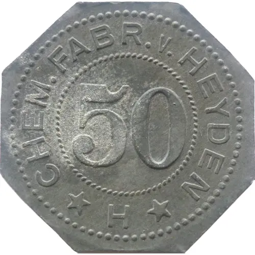 | Opschrift voorzijde | CHEM. FABR. v. HEYDEN 50 ★ H ★ |