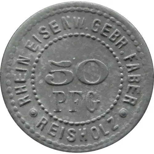 | Legenda del dritto | RHEIN. EISENW. GEBR. FABER 50 PFG. ● REISHOLZ ● |