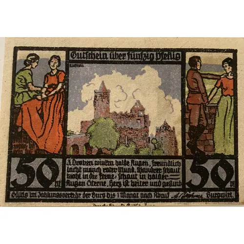 | Obverse description | Castle Rudelsburg Verse 3: Song about the Saale river |