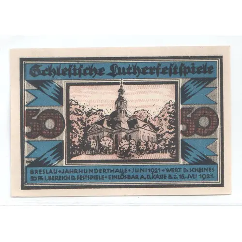 50 Pfennig Schlesische Lutherfestspiele