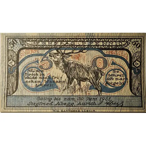 | Vorderseitenbeschreibung | Signed Siegfried Abegg, Aurich. Sketch of a male Deer in the centre. |