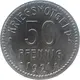 | Reverse lettering | • KRIEGSNOTGELD • 50 PFENNIG • 1921 • |