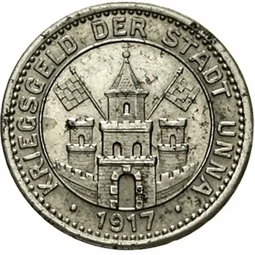 | Obverse lettering | KRIEGSGELD DER STADT UNNA • 1917 • |