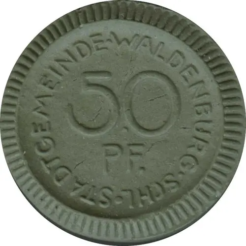 Stadt Gemeinde-Waldenburg-Schl 50 Pf. (Translation: City of Waldenburg-Schl 50 Pf.) |