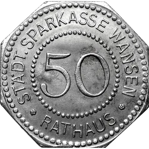| Obverse lettering | STÄDT. SPARKASSE WANSEN 50 ✿ RATHAUS ✿ |