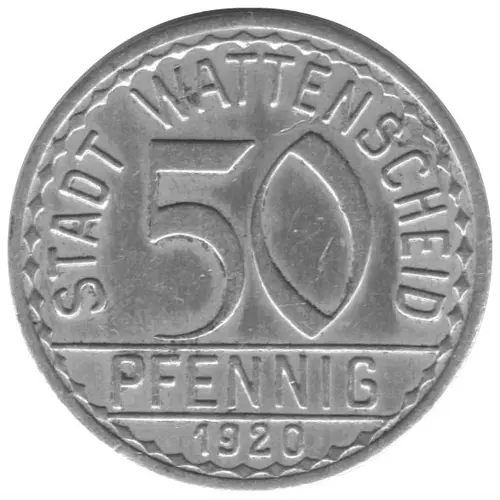 | Legenda awersu | STADT WATTENSCHEID 50 PFENNIG 1920 |